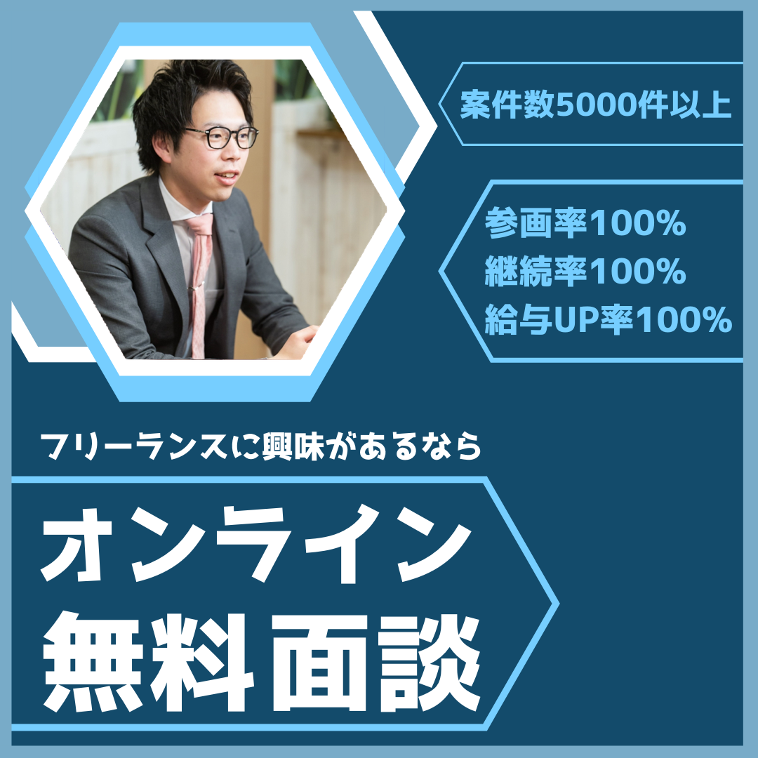 フリーランス転身支援にて、案件参画率100%・継続率100%・給与UP率100%を達成中。ご紹介できる案件数は常時5000件以上。