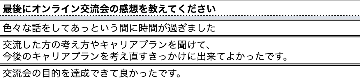 30分×3回ローテンションをしていろんな人と話せるように工夫しましたが、まだまだ話し足りない様子で、僕の想像以上に盛り上がっていて、やってよかったです!
