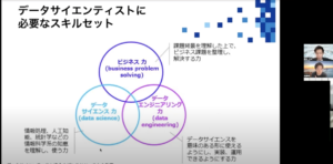 エンジニアのみなさんであれば、エンジニアリング力はあると思いますので、『ビジネス力』『データサイエンス力』が必要になるかと思います。