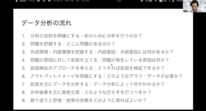 顧客の課題を解決するために、どのような流れで分析していくのかについて解説していただきました。