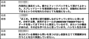 今回で、最終講義になり、顧客(仮で設定)が抱える課題を、データを用いて解決するという実践型での勉強会となりました。