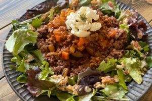 玄米チャーハン・玄米タコライスなど+キノコ系のスープ
