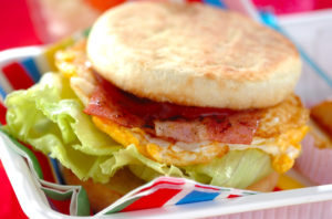 イングリッシュマフィン(半熟たまご+ベーコン(ハム)+レタス)+野菜スープ