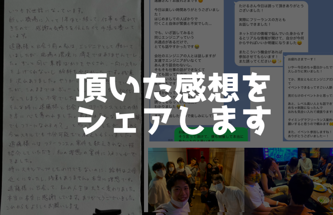 僕が運営する無料エンジニアコミュニティで開催したイベントの参加者からいただいた感想です。